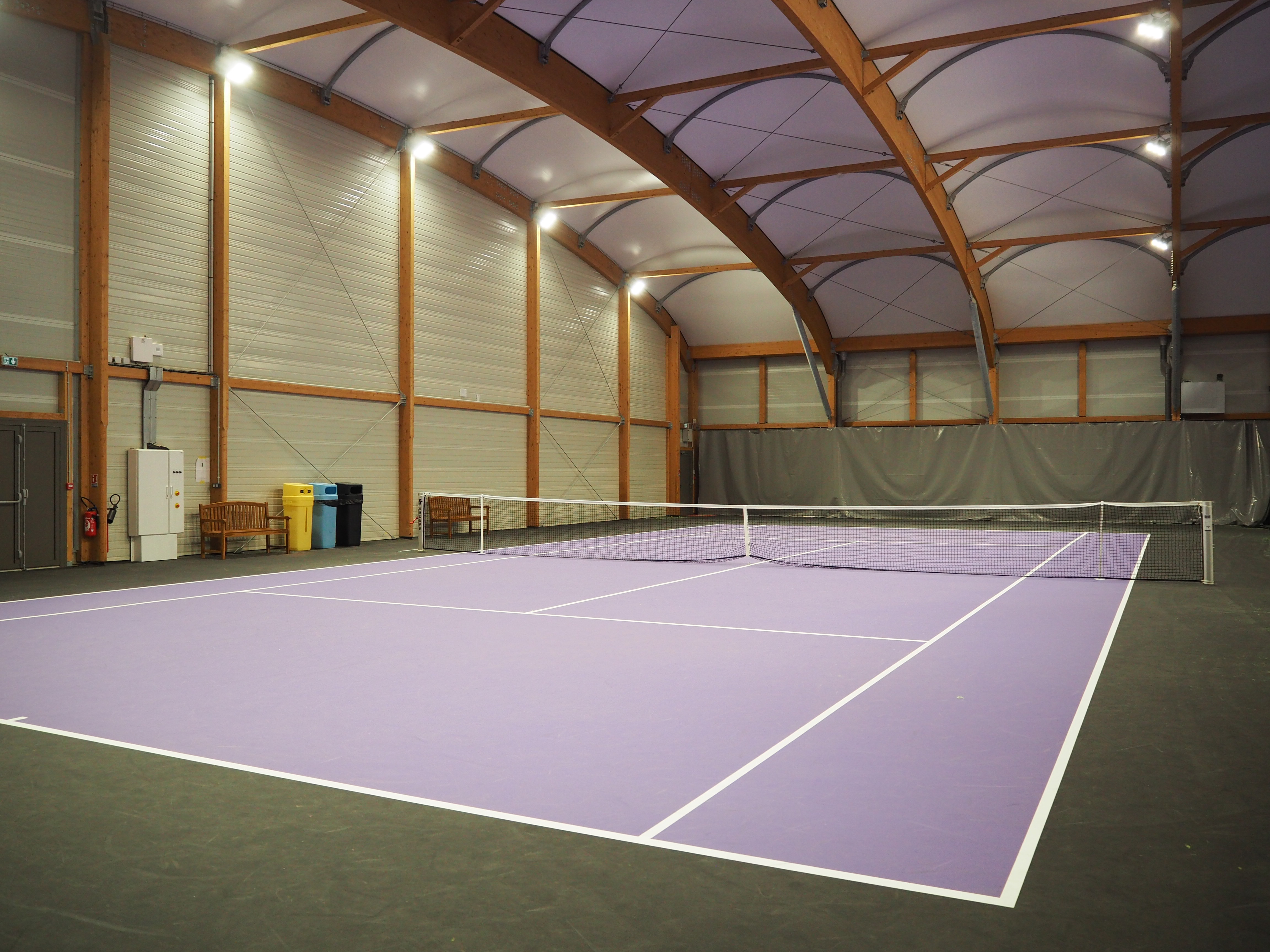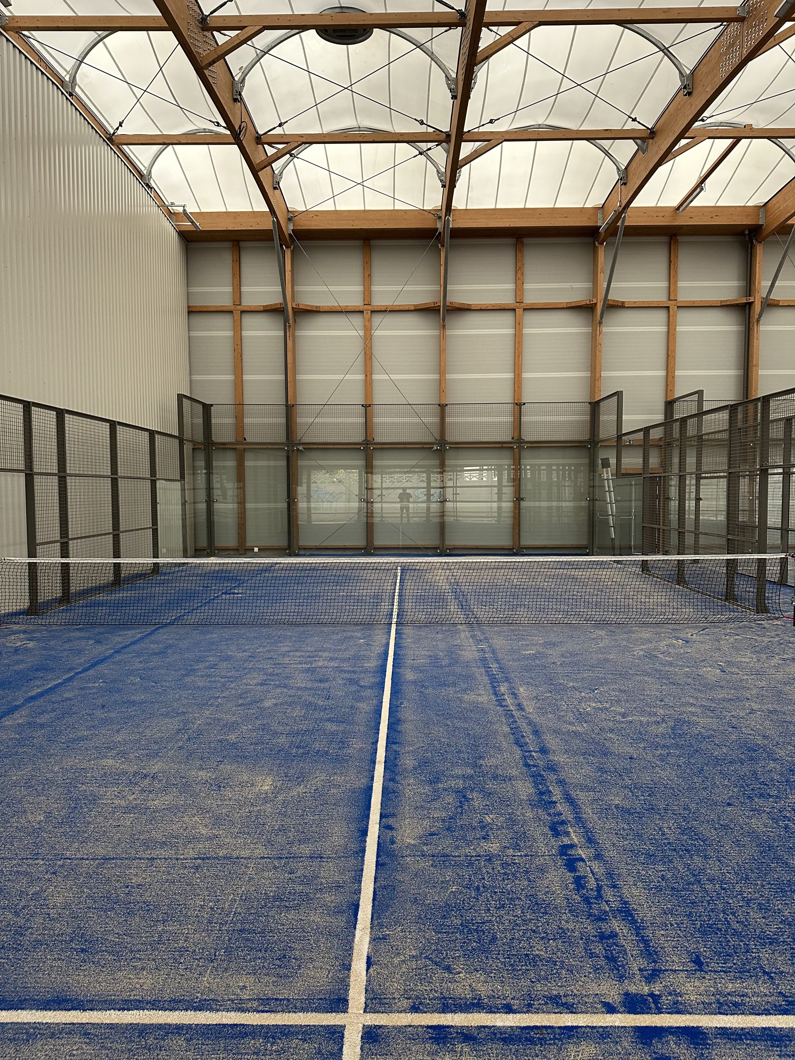Le complexe sportif compte, à l’intérieur, deux courts de tennis en résine et deux terrains de padel en gazon synthétique sablé et, à l’extérieur, deux courts en terre battue synthétique.